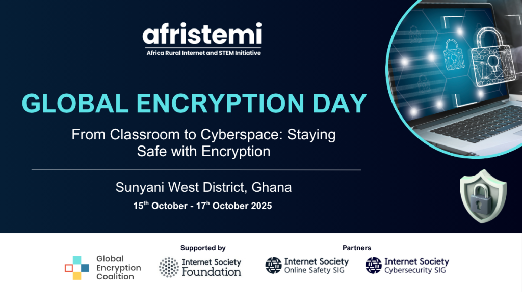 AFRISTEMI, in collaboration with the Online Safety and Cybersecurity SIGs, will organize a 3-day Global Encryption Day 2025 program in the Sunyani West District under the theme “From Classroom to Cyberspace: Staying Safe with Encryption.” The goal is to raise awareness about encryption, online privacy, and safe digital practices among students and educators. Over the first two days, we will visit 2–3 schools to engage about 150 students and 20 teachers through interactive presentations, demonstrations, and fun activities such as the secret code challenge, password strength game, and creative poster design session.