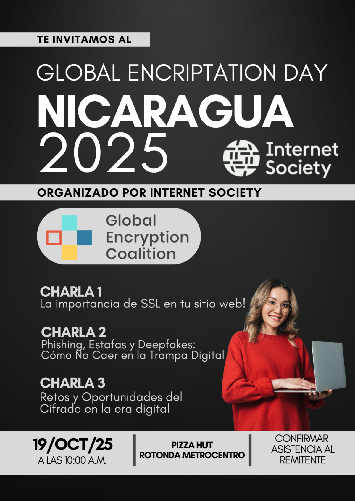 Únete a nosotros en el “Día Mundial del Cifrado en Nicaragua”, un evento dedicado a explorar la importancia del cifrado en la seguridad digital. Este año, nos enfocamos en empoderar a los futuros líderes de las Tecnologías de la Información y Comunicación (TIC) con herramientas y conocimientos esenciales sobre cifrado. A través de charlas, talleres […]