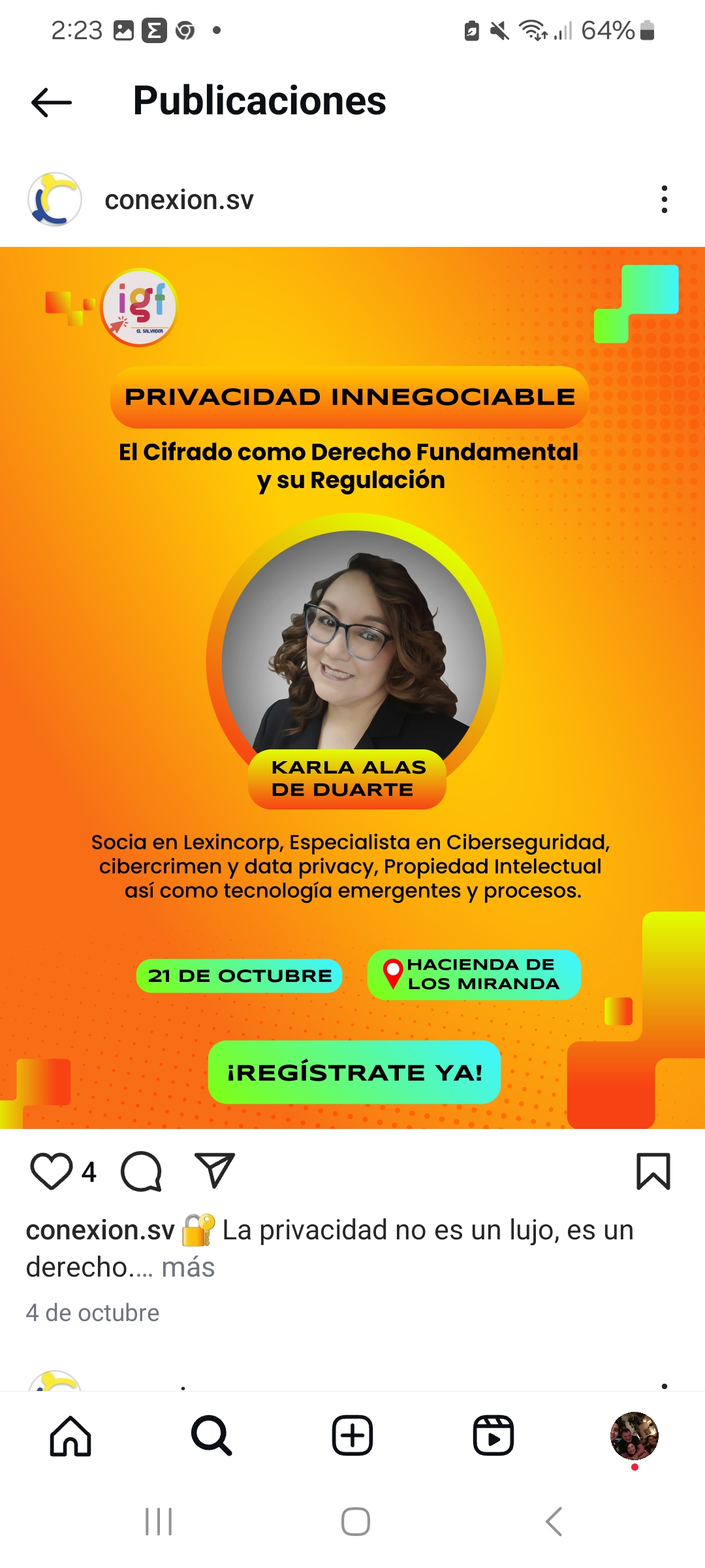 Martes 21 de octubre Hacienda Los Miranda Desde las 8 am hasta las 12:30 pm Además, se hará conexión abierta del evento en vivo a través de Google meet y posteriormente será subido a YouTube para ser visto a demanda. 9:00 am Palabras de bienvenida por el presidente de ISOC El Salvador 9:30 am Charla […]